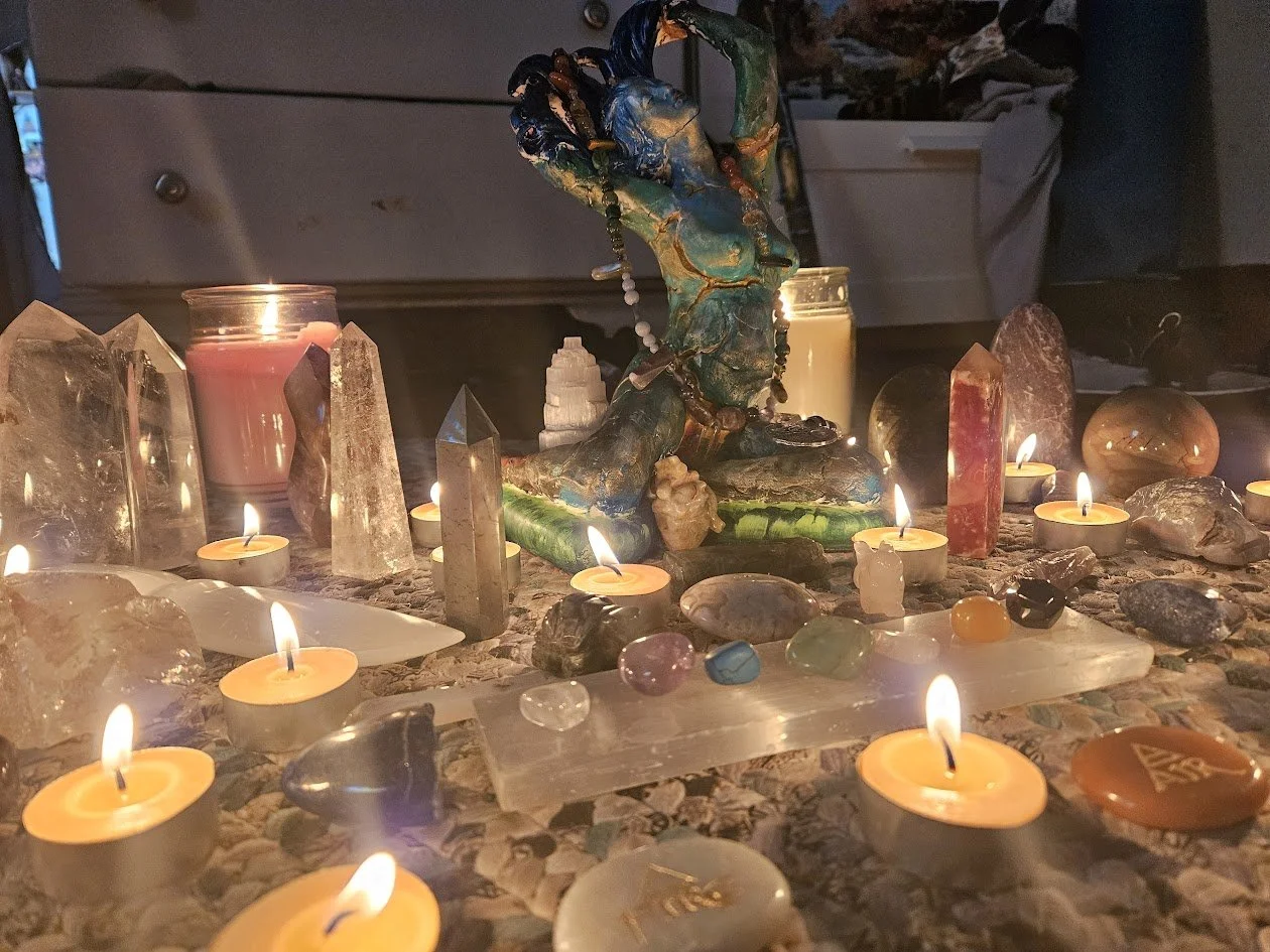 My name is Fiona (they/them), and I am a spiritual practitioner living on the stolen and unceded land of the Massa-adchu-es-et, Pawtucket, and Naumkeag tribes in the region now known as Boston, MA. A portion of all proceeds of my work will be donated to these groups to acknowledge their rightful place on this soil.